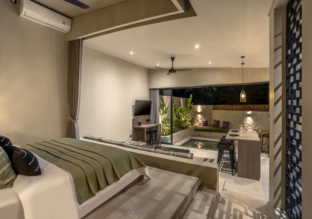 This modern one-bedroom villa is nestled in the peaceful neighborhood of Pererenan, Bali. Designed with clean lines, natural textures, and plenty of natural light, it’s a private retreat for couples, solo travelers, or digital nomads looking for a calm stay close to both Pererenan and Canggu.
